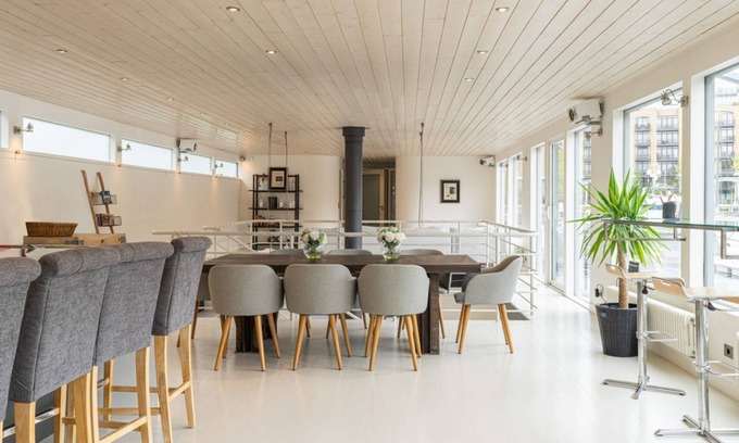 ✔ UK’s largest houseboat located in St. Katharine Docks in East London