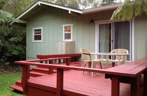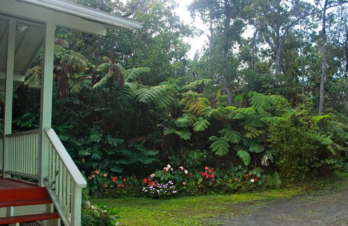 Wonderful, private and cozy cottage up in the forest of Kaloko Mauka ( directly above Kona town!). Situated on 5 acres and 2700 foot elevation, this stand alone cottage is surrounded by beautiful ohia trees and is at least 300 feet from the main residence. The owners live further down on the property. Wild chickens and native birds abound.