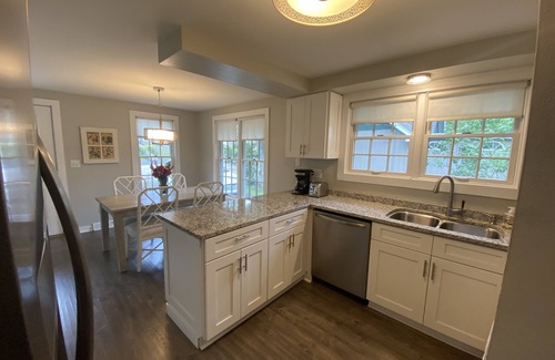House has a modern kitchen with full range, dishwasher, coffee, toaster, 2 refrigerators and freezers. Linens, towels, dishes and kitchenware provided. Outdoor seating with oversize umbrella for warm Wisconsin days and indoor dining for cool nights.