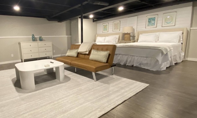 The finished basement has two queen beds, a full bathroom and a washer and dryer. The basement also doubles as a rec room with a queen pull out couch, comfy chairs, a second internet-based TV and an XBOX for rainy days.