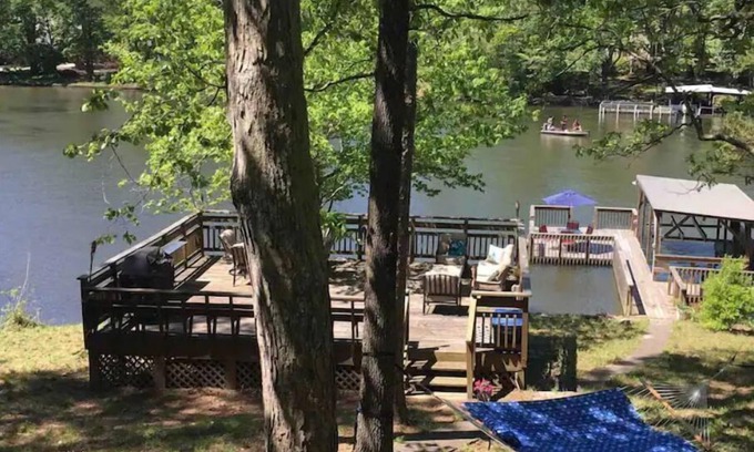 Family home on Badin lake. Enjoy the water and outdoors at this wonderful home. Lots of outdoor spaces to accomodate you. Pier with boat slip for your watercraft, lake side deck with seating and fire pit dining table. Screened in porch with seating, table and tv. Upper deck with table and grill. Home is fully equipped with all your basic needs. Water floats and life jackets are available. 3 bedrooms, 2 baths , great room and kitchen. There is also a dedicated office space,if you must work. Home has high speed internet, HBO, HULU, Disney, Amazon video. Late check out time available so you can enjoy your last day to the fullest. . NC wildlife Circle drive boat ramp only 3 lots away.