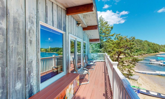 Inside you'll be met with a bright interior and a warm welcome throughout the space. The living area invites you in to take in the views from the windows, carry on great conversation, and relax. Hobby chefs will love preparing lake picnic snacks in the unique full kitchen, with plenty of room to maneuver about and make culinary charms. Dine alfresco or watch the stars come out on the wrap-around deck. The bedrooms are comfortable, spacious, and perfect for a great night's rest after the day's activities. If you need to stay connected, a dedicated workspace is available with a desk and chair. Make memories that'll last a lifetime when you stay here in beautiful Massachusetts.