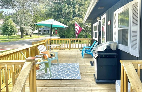 Lovely cottage walking distance to downtown Culver, Lake Max and Culver academies. Huge yard with plenty of space for yard games, grilling out and fun in the sun! Cottage recently renovated with high-end finishes and new beds for your comfort. Stay connected with free guest WiFi and smart TV. Kitchen stocked with everything needed to cook at home. Plenty of free street parking. Located right around the corner from shopping and Culver's best cafes/restaurants/bars. Enjoy morning coffee, evening BBQs and lots of sunshine on brand new, large deck.