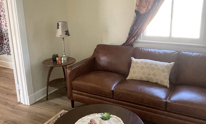 Get ready to relax in this lovely 2-bedroom house in New Orleans. This serene property features 1 king bed, 1 full bed, and and extra twin bed, perfect for a peaceful night's sleep. With amenities like AC, WiFi, a cozy living room, and recently renovated kitchen and bathroom guests will feel right at home. Fall in love with New Orleans and enjoy the magic it has to offer.
