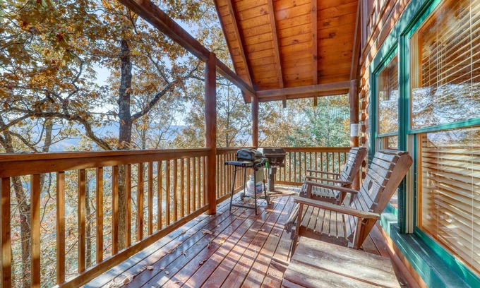 Find a gorgeous escape among the treetops at this beautifully positioned home in Pigeon Forge, an aptly named Treehouse in the serene and private Sherwood Forest Resort. Enjoy such wonderful comforts as a private hot tub on the covered deck, a pool table with a lovely view, and seasonal access to the community's outdoor swimming pool - all mere minutes from downtown Pigeon Forge.