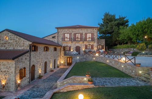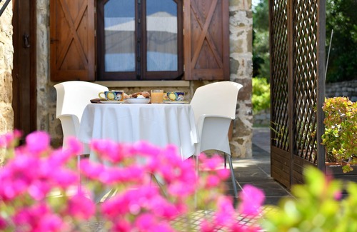 The Marinelle apartment is located in the main section of a beautifully restored farmhouse and offers a single-level layout with its own private entrance and outdoor patio. This spacious apartment features a fully equipped kitchen with a dishwasher and washing machine, a comfortable dining and living area with a flatscreen TV, Wi-Fi, and a sofa bed for an additional guest ( single sofa extra on request)