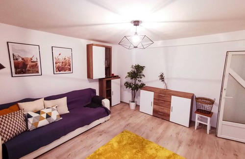 Nestled at the foot of a mountain in Busteni, Romania, this cozy, quiet apartment offers all amenities. Visit Cantacuzino Castle (where "Wednesday" tv series was filmed), hike or go by cablecar to Babele, Sphinx, Caraiman Cross, and Urlatoarea Waterfall. Sinaia and Peles Castle are nearby.