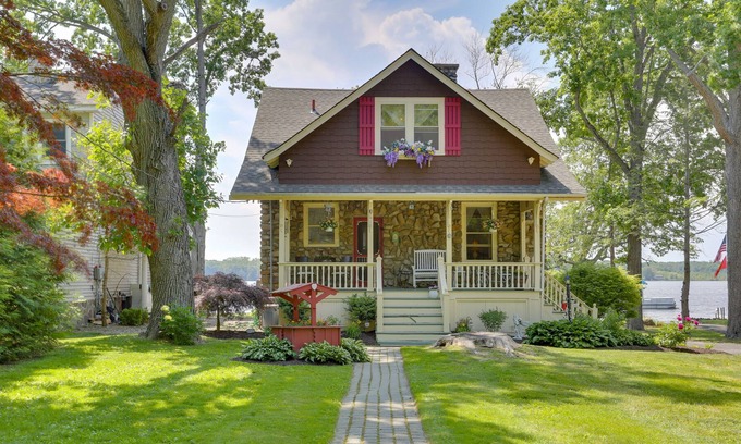 Escape the city and discover your new favorite home away from home at this 4-bed, 1-bath vacation rental on Orange Lake. Situated in New York's Hudson Valley, the home not only features easy access to outdoor recreation and sightseeing, but on-site fun, too. Take the kayaks out for a spin, splash in the freshwater, or play cornhole on the lakefront lawn. When evening falls, admire breathtaking sunsets over dinner on the porch or s'mores around the fire pit. A relaxing, nostalgic stay awaits.