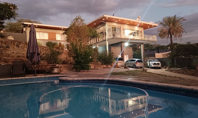 Sapphire Main 2 Self Catering At 54 is ideally located just a 5-minute walk from Maerua Mall and a 15-minute stroll into Windhoek CBD. Maerua Mall houses a number of shops, restaurants, coffee shops, and a bureau de change. This unit is on the first floor of a big house and shares the first floor with a self-contained unit. It has two bedrooms, one with a queen-size bed and the other one with 2 three-quarter beds. It has a full bathroom with a shower and a bathtub. The lounging area has a double sofa bed that can take two more people. It has a fully equipped kitchen . Big groups can book the two units and have the whole of the first floor. Additional highlights: Free, secure on-site parking, fully equipped kitchen, fast Wi-Fi with dedicated work stations, scheduled housekeeping for long stays, camping gear for hire is available. This property is nestled on the scenic slopes of Luxury Hill, one of Windhoek’s most sought-after neighborhoods. Elevated above the city, this prime location offers breathtaking panoramic views of Windhoek. From this serene vantage point, guests are treated to sweeping, uninterrupted views of the cityscape, with breathtaking sunsets that add a golden touch to your sundowners on the terrace. The quiet, tree-lined streets of Luxury Hill offer a great opportunity for perfect leisurely walks as well as invigorating hill climbs for those who enjoy combining wellness with indulgence. This tranquil scenic environment is a sharp contrast to the city center bustle, yet it is very close to the City Centre.
