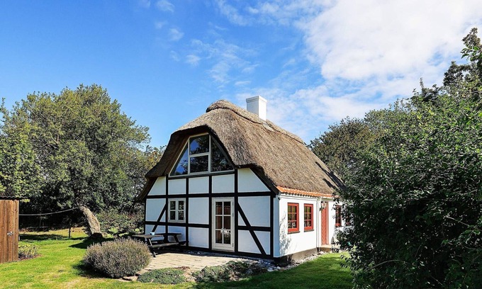 Layout: open kitchen(cooker(electric), coffee machine, microwave, dishwasher, fridge), Living/bed room(single folding bed, double bed, TV(german television channels, danish TV channels (DR1 and TV2)), radio), bedroom(double bed, children's bed), bathroom(floor heating)(bathtub or shower, washbasin, toilet, washing machine), heating(electric), terrace, BBQ