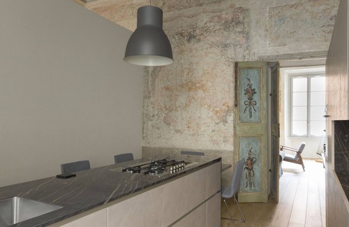 Welcome to the Contrada San Domenico, a charming residence embellished throughout with authentic frescoes and XVII century paintings and illuminated by lamps of the finest Italian design. The apartment is on the first floor (without elevator) of a historic building of XVII century, on one of the most elegant streets of the center of Mantua. Bordered by ancient palaces, among the most beautiful in the city, Contrada San Domenico is only a few steps from the major attractions that have made Mantua famous in the world.