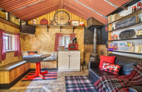 Make memories in this cute as a bug newly refurbished studio cabin featuring an efficient kitchenette and bath, cozy antique wood burning stove, and charming banquette seating area. Enjoy the original art and photography, one of a kind wood wall treatments, reclaimed tin ceiling, and interesting antique artifacts. Rest easy in the comfy full size bed with fresh linens line dried in clean mountain air. Kitchenette includes mini fridge, microwave, hotplate, toaster, and coffee maker, along with all dishes, cookware and basic spices. Smart TV and secure WIFI provided. Relax amongst the wildflowers on a furnished patio near the sounds of the river, passing wildlife and picturesque mountain views.