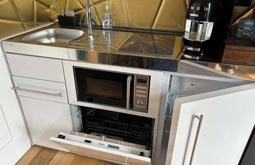 -Fully equipped kitchen: a fridge, a hob, an oven, a kettle, a freezer and a microwave