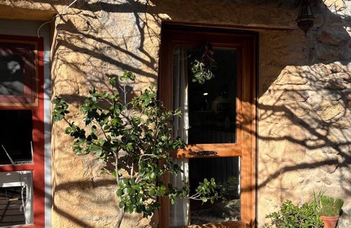Remote and very private our propery is a lovely stone cottage, a sweet simple hideaway for two set in wonderful nature, with lovely circular walks from the doorstep, amazing birdlife and flowers in Spring. The house is totally detached and surrounded by garden with a big shady grapevine covered patio at the front from which to enjoy the amazing view of the Gredos mountains as it changes throughout the day. Once you arrive you will be tempted to spend all day just on the patio, with views across the fig orchard to the snow-capped mountains beyond but you can also choose to take a stroll through wonderful oak and chesnut forests, view Incredible Birds at Monfrague Natural Park, swim in the amazing river pools or visit the magnificent city of Trujillo which is just a short drive away.