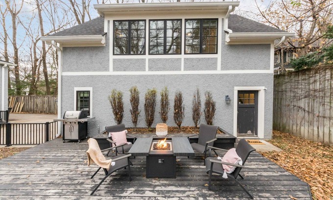 Cozy historic studio in the heart of Ann Arbor. Queen bed, walk-in shower, full kitchen, workspace, Smart TV, patio w/ fire pit & grill. Steps from downtown dining, shops & culture.