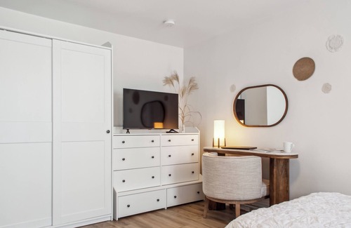 While you're here, you can enjoy all the comforts of home and more, including WiFi and air conditioning, as well as a dryer and an ironing board. Other amenities include towels, soap, toilet paper, and a hair dryer.