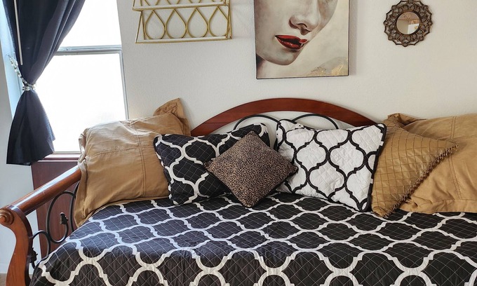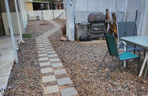 This delightful Studio in East Mesa, is a cozy retreat for guests looking for a comfortable stay. With a lovely bedroom with a Day Bed, 2 twin beds with good almost new mattress, a nice bathroom with a shower and hair dryer, Amenities like WiFi, TV, AC, pots and pan, refrigerator, Air Fryer, small Stove, microwave , a littler Vintage Closet, Porch w fence, this gorgeous space 355 S/F, has everything you need. Whether you're relaxing in the Pool or exercise in the fitness on The Club House, this charming studio is the perfect spot for your trip. Very close to Everything. We're happy to assist with any questions while you stay at our studio with private Entrance and Quiet. Has a one small fence if you have a small dog, please, no more than 10 pounds, for more Security.