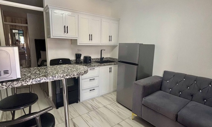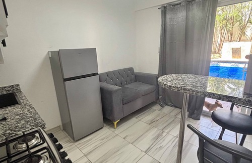 Discover comfort and convenience in Sosúa! Our studio is located in the heart of town, just 2 minutes from the beach and close to all shops, restaurants, and family activities. Equipped with a comfy queen bed, modern bathroom, and cool AC, you’ll feel at home right away. The hotel’s large pool is perfect for both kids and adults. A safe, welcoming stay for families who want both adventure and relaxation.