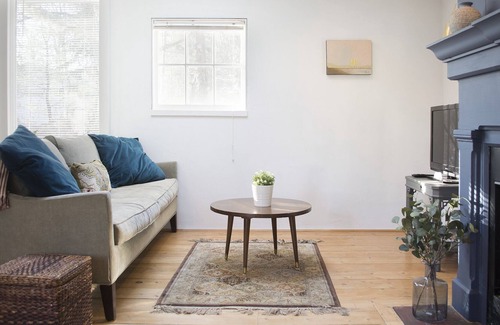 Cozy and charming guesthouse in the heart of town. The space boasts a kitchenette, full bathroom, and can comfortably sleep 1-3 people. Coffee, drinks, and snacks included. Close proximity to bike trail, shops, and restaurants. 4th person couch sleeper can be accommodated.