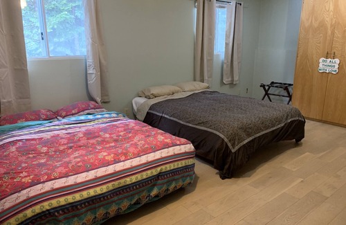 Large bright suite with high ceilings and simple kitchenette with a queen bed. Private full bathroom and entrance. Located on a picturesque family farm in the heart of the Fraser Valley.