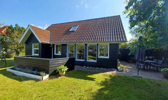 Charming older two-story summer house with 7 beds. The house is located on a quiet street and offers plenty of charm and space for coziness and togetherness both indoors and outdoors. Private enclosed backyard with fencing. Just 150 m from a child-friendly sandy beach.