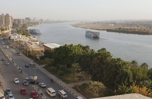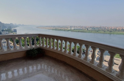 The apartment has an amazing majestic view of the Nile River and a long view of the Giza pyramids from repatriation and balcony. It has 3 bedrooms : - A single master bedroom . 2 bed room each has 2 single beds. - Kitchen . - Bathroom. - Living Room with the dining table. - Its location is in a lively place where there is everything around it popular restaurants and supermarkets. building has 2 elevators and secured by cameras