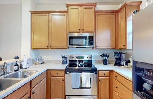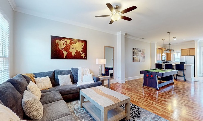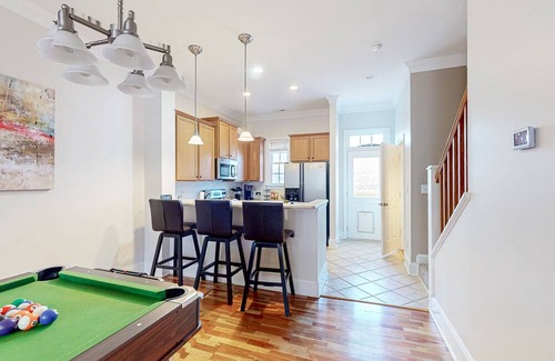 Back at the townhome, the fun only continues! Gather around the pool table and engage in hours of playful competition. Or, prepare a tasty drink in the fully equipped kitchen and take it into the private yard. When you want to kick your feet up, the sun-filled living room boasts an oversized sofa and a large smart TV. The bedrooms, equally inviting, present personal TVs, soft linens, and ceiling fans. Rounding out the interior amenities, central air-conditioning and a private washer/dryer are available during your stay.