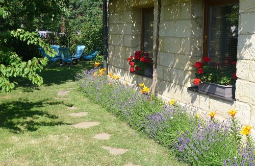 The house has its 300 m² garden with terrace (accessible directly from the living room), table and chairs, deck-chairs, barbecue and for the children a small bathing pool, cabin for "pirates" and a sandpit. Depending on the season, you can pick up some fruits in the garden.