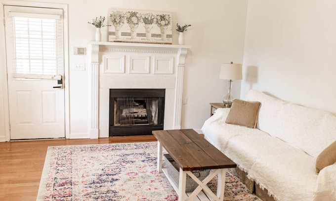 This charming two-story home has been newly redone with a white, bright farmhouse meets Shabby chic style. It has two bedrooms and one full bathroom downstairs. The upstairs has a king size bed and a full bathroom.
