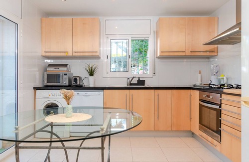 It has three double bedrooms with all the comforts, one of them with its own bathroom, fully equipped kitchen, living-dining room with large sofa and armchairs, complete bathroom with shower and an excellent garden with several rooms where you can relax, swimming pool with outdoor shower and 4 sun loungers, a barbecue and a set of table and chairs where you can enjoy the Mediterranean climate. Located in a complete residential area with parking at the door of the house.