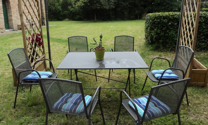 A large and comfortable lounge-dining room gathers guests in the morning for a hearty breakfast. Next to it there is a small kitchen equipped with all appliances; adjacent to the kitchen on the outdoor terrace you can have breakfast or lunch outdoors. The style of the house is respectful of the environment: terracotta flooring, sandstone finishes; ceilings with exposed wooden beams. The furniture is vintage, simple and elegant. Everything has been subject to a discreet and careful restructuring. In the vicinity there are several restaurants / taverns with meat or fish menus with a good price ratio. The structure is unique for the large park that surrounds it, for the atmosphere of absolute peace and relaxation. All 4 km from the center of the village Osimo renowned for its history.