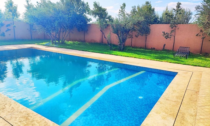 Enjoy a luxurious stay at this elegant villa located in Aghmat on the Marrakech-Ourika road. With 2 comfortable bedrooms, a spacious living room, and a modern kitchen, this villa is perfect for a peaceful retreat. Relax in the private swimming pool or unwind in the lush garden. Just minutes from the vibrant city of Marrakech and the stunning Atlas Mountains, it offers complete privacy, WiFi, air conditioning, and private parking. Ideal for a quiet, relaxing getaway.