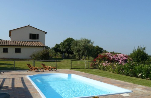 Farmhouse (160 m2) that has been recently renovated in the hills of Pisa (350 m a.s.l) in a 15 ha property with olive groves and woods. 1.5 km Castellina Marittima (all kinds of shops, horse riding), 12 km the sea, 40 km Pisa, Livorno and Volterra, 55 km San Gimignano. Panoramic view that extends from the Apuane Alps to the sea. In summer the sun sets behind Corsica, and some mornings, you can see the Duomo of Pisa. Peacefull position. In the equipped lawn near the house the swimming pool (4x8) (1/5-30/9) is to be found with a jacuzzi bench, changing room and outside shower. )