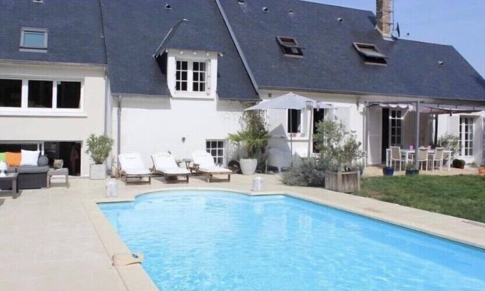 This elegant and spacious Touraine house welcomes you in the heart of Touraine and its castles. With an area of 200m2 and a living / dining room of 70m2, this house offers you a very comfortable living space. Our kitchen is fully equipped with all the equipment you will need. The house has 4 bedrooms with very neat decoration: The first bedroom is a suite with a 160cm bed overlooking the pool. a second bedroom with a 140cm bed, a third bedroom with a 120cm bed and a fourth bedroom also with a 120cm bed. The private swimming pool is heated (in summer). You have a large terrace with patio and a relaxation area with large outdoor sofas. The garden is fully enclosed with a small ornamental pond.