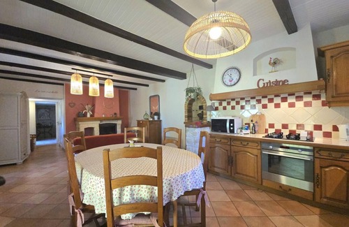 20 km from Périgueux and 4 km from Le Change (shops), this 110 m² village house adjoins another house. On the ground floor, you can enjoy a living room opening onto the fully equipped kitchen with a fireplace insert. You can relax in the lounge area with television and Wi-Fi internet connection. There is a separate toilet. Upstairs, you will have access to two bedrooms: a first bedroom with a 160x200 cm bed, and a second bedroom with a 140x190 cm bed. On the same level, a bedroom with a 120 cm bed is available, contact the owner. A shower room is available. Electric heating is available. Laundry room with outside access. Two free bicycles are available.