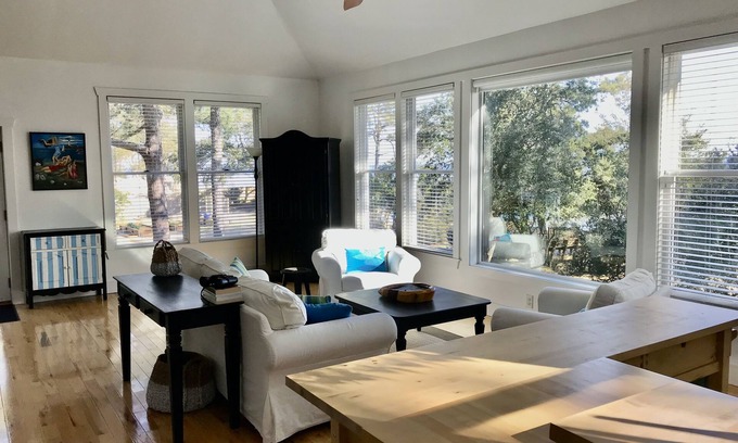 Peaceful, yet centrally-located, this beautifully appointed 900 sq ft studio is perfectly located for kayaking, paddle boarding, windsurfing, or quietly relaxing on your own private sandy beach. If you prefer bigger waves, the ocean is minutes away with plenty of free parking. The Outer Banks is home to several national parks with hiking and biking trails for the nature lover. There are also a number of golf courses to choose from, a nearby waterpark, and of course plenty of restaurants.