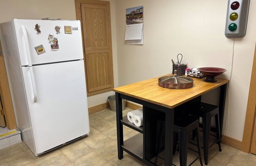 Accommodating up to 12 guests, The Tin Roof features five private bedrooms, flexible sleeping arrangements, and multiple cozy gathering spaces spread across three levels. The fully finished basement includes an additional kitchenette, offering extra convenience for groups or extended stays.