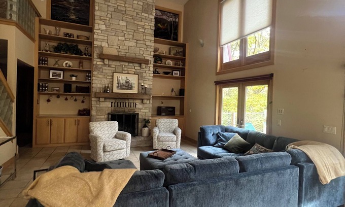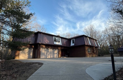 Welcome to The Tin Roof, a charming retreat nestled on 30 serene wooded acres along the picturesque Pigeon River. This is our second home, sharing the property with The Retreat House (listing number 1576588). It is a versatile space that is perfect for family gatherings, intimate team retreats, creative workshops, or a much-needed weekend escape. Thoughtfully designed to balance comfort and connection, The Tin Roof offers a unique blend of modern amenities and natural tranquility, making it the ideal setting to relax, recharge, and create lasting memories.