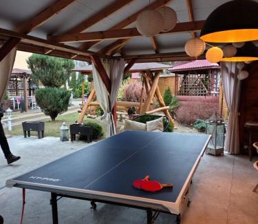 Chata Magnata offers accommodations in Zamość, 7.4 miles from Zamość Synagogue and 7.7 miles from Zamość Town Hall. This property offers access to a balcony, free private parking, and free Wifi. Outdoor seating is also available at the apartment. Offering a terrace and garden views, the spacious apartment includes 5 bedrooms, a living room, satellite flat-screen TV, an equipped kitchen, and 2 bathrooms with a hot tub and a bath. Towels and bed linen are featured in the apartment. There's also a seating area and a fireplace. Zamość Cathedral is 7.7 miles from Chata Magnata, while Grand Market Square is 7.6 miles away. Lublin Airport is 63 miles from the property.