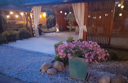 BathroomPrivate bathroom, Bathtub or shower, Toilet paper, Hairdryer, Toilet, Guest bathroom, Towels, Shower, Bathtub, Body soapMedia & TechnologyTV, Satellite channels, Mobile hotspot device, Flat-screen TVActivitiesHot tub, SaunaGeneralInterconnecting room(s) available, Iron, Heating, Private entrance, Ironing facilitiesOutdoorsBarbecue, Outdoor dining area, Terrace, Outdoor furniture, BalconyKitchenOven, Kitchen, Electric kettle, Washing machine, Dishwasher, Microwave, Refrigerator, Wine glasses, Dining table, Kitchenware, StovetopLiving AreaSofa, Fireplace, Sitting area, Dining areaViewView, Garden viewBedroomWardrobe or closet, Linens, Childrens' cribsBuilding CharacteristicsDetachedRoom AmenitiesSocket near the bed, Clothes rack, Drying rack for clothing |