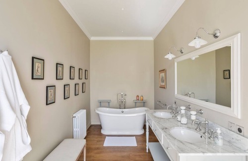 - Bathroom (shared between above two doubles) with bath and double sinks