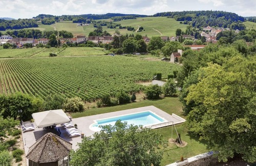 The exceptional Chateau de Naugues is the ideal base to explore the famous wine route of Burgundy while enjoying the luxurious comfort that the estate offers. This 19th Century ‘Haussmann’ style château is situated among vineyards and offers an exceptional panoramic view over the surrounding countryside. The landscaped garden covers 4000m2 with a 5x10m heated pool located at the foot of the vineyards.