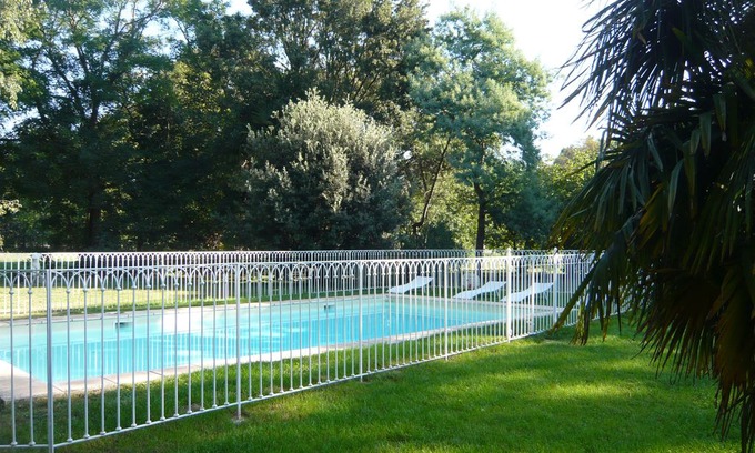 The chateau is a large 17th century mansion, overlooking the Pyrenees. It is set within a park of 5,6 acres with centenary trees and a private pool. Brightened up, bathed by light, it offers a magnificent sight on the Pyrenees mountains. Vast with 17 rooms, distributed on 600 M2, it can house up to 40 people. In the reception room, you can organize a reception of 200 people.