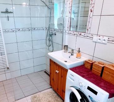 Food & DrinkTea/Coffee makerBathroomShower, Hairdryer, Free toiletries, Toilet paper, Body soap, Towels, Shampoo, Toilet, Private bathroomMedia & TechnologyFlat-screen TV, Radio, Streaming service (like Netflix), CD player, TVKitchenRefrigerator, Kitchenware, Dining table, Cleaning products, Oven, Kitchen, Dishwasher, Washing machine, Microwave, Stovetop, Electric kettle, Wine glassesBedroomLinens, Wardrobe or closet, Extra long beds (> 6.5 ft)GeneralTrash cans, Key access, Heating, CarpetedLiving AreaSofaViewLandmark view, City view, Quiet street view, ViewAccessibilityUpper floors accessible by stairs onlyBuilding CharacteristicsPrivate apartment in buildingRoom AmenitiesSocket near the bed, Clothes rack, Drying rack for clothing, Sofa bed, Hypoallergenic pillow, Non-feather pillowEntertainment & Family ServicesBoard games/puzzles |