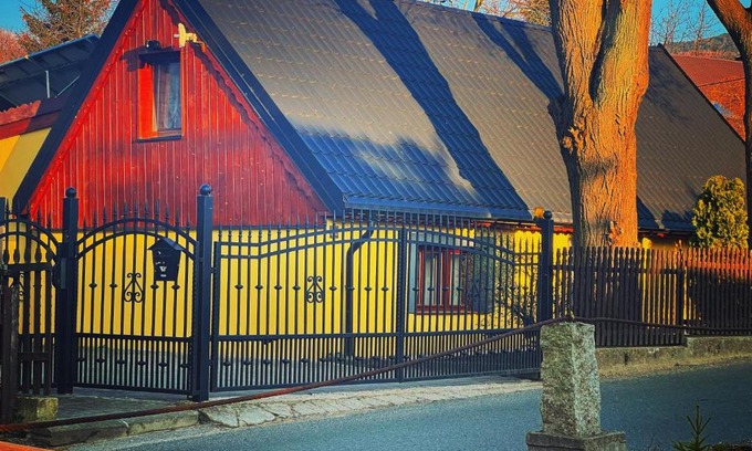 Chatka Baby Jagi offers accommodations in Ściegny, 15 miles from Dinopark and 16 miles from Szklarska Poreba Bus Station. 1.8 miles from Western City and 3.8 miles from Wang Church, the property features a garden and barbecue facilities. There's a picnic area and guests can use free Wifi and free private parking. Featuring a terrace and garden views, the villa includes 3 bedrooms, a living room, satellite flat-screen TV, an equipped kitchen, and 2 bathrooms with a bath and a shower. Towels and bed linen are offered in the villa. There's also a seating area and a fireplace. Guests can also relax in the shared lounge area. Death Turn is 16 miles from the villa, while Izerska Railway is 17 miles from the property. Copernicus Wrocław Airport is 69 miles away.