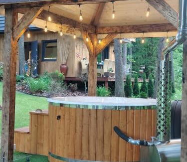 Providing a garden, Chatki Bernadki - Siedliska na Roztoczu provides accommodations in Siedliska. This property offers access to a terrace and free private parking. The vacation home has an outdoor fireplace and a hot tub. The air-conditioned vacation home consists of 2 bedrooms, a living room, a fully equipped kitchenette with an oven and a kettle, and 1 bathroom with a shower and a hair dryer. Towels and bed linen are provided in the vacation home. There's also a seating area and a fireplace. The vacation home has a picnic area where you can spend the day outdoors. Horyniec Zdroj Train Station is 13 miles from the vacation home. Rzeszów-Jasionka Airport is 86 miles away.