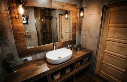 Offering garden views, Chaty Skwirutowe Wzgórze - Domki Całoroczne in Solina offers accommodations, a garden, barbecue facilities, and a shared lounge. This property offers access to a balcony, free private parking, and free Wifi. The chalet has private entrance. The chalet provides guests with a terrace, mountain views, a seating area, a flat-screen TV, a fully equipped kitchen with a dishwasher and a fridge, and a private bathroom with shower and a hair dryer. A stovetop and kitchenware are also offered, as well as a coffee machine and a kettle. At the chalet complex, units are equipped with bed linen and towels. Guests at Chaty Skwirutowe Wzgórze - Domki Całoroczne will be able to enjoy activities in and around Solina, like cycling and walking tours. Guests can also warm up near the outdoor fireplace after a day of skiing. Skansen Sanok is 24 miles from the accommodation, while The Solina Dam is 5.4 miles from the property.