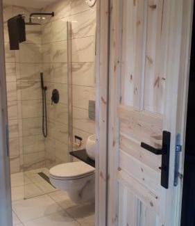 Chaty Trzy 731-950-635 features lake views, free WiFi and free private parking, located in Solina, 20 miles from Skansen Sanok. The lodge provides guests with a terrace, mountain views, a seating area, a flat-screen TV, a fully equipped kitchen with a fridge and a stovetop, and a private bathroom with shower. A patio with garden views is offered in every unit. Chaty Trzy 731-950-635 has a playground. Guests can swim in the outdoor swimming pool, go hiking or skiing, or relax in the garden and use the grill facilities. The Solina Dam is 1.8 miles from the accommodation, while Zdzislaw Beksinski Gallery is 19 miles away. Rzeszów-Jasionka Airport is 70 miles from the property.