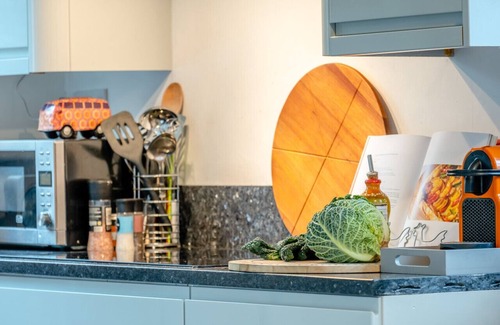 Electric oven/hob, fridge/freezer, microwave, dishwasher, coffee machine, washing machine