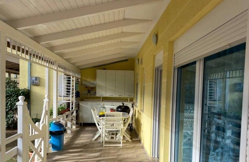 A great place in the Lalzi Bay area in the Lura1 resort, within lot of green at 100m from the beach. In the summer season a gazebo is available for the guests at the beach. Children friendly. Indoor fireplace and outdoor BBQ. A big roof terrace to enjoy the sky, relax and an additional dining area. Ideal for family vacation and remote working. The villa can host up to 2 families with 10 bed places available and more couches in the big living room. It provide free available parking place for more cars. Very close to multiple restaurants, mini-markets, Spa, Gym, swimming-pool, playground